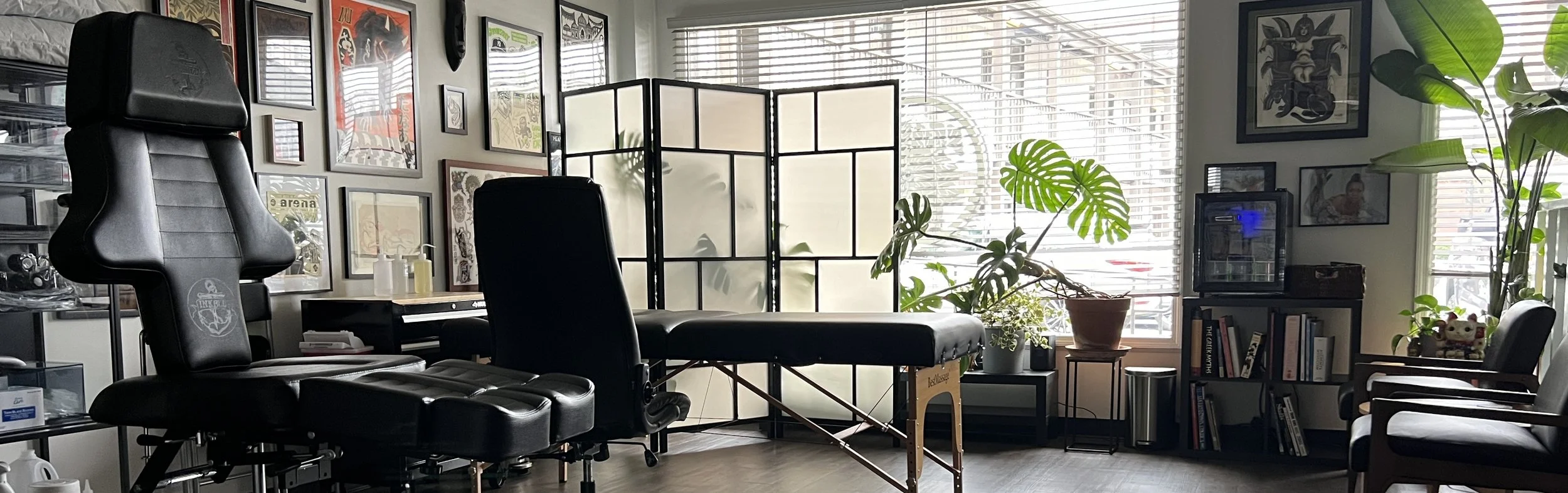 Wes focuses on Japanese, Traditional, and Cover-Up tattoos; Kandace specializes in Ornamental, Tribal, and Blackwork pieces.